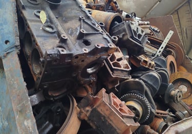 A sucata de ferro fundido é composta por peças e partes de ferro que já foram usadas e estão danificadas. Essas peças são recolhidas e recicladas para serem transformadas em novos produtos.